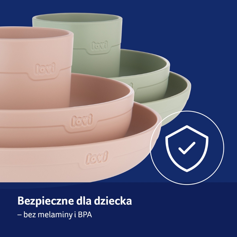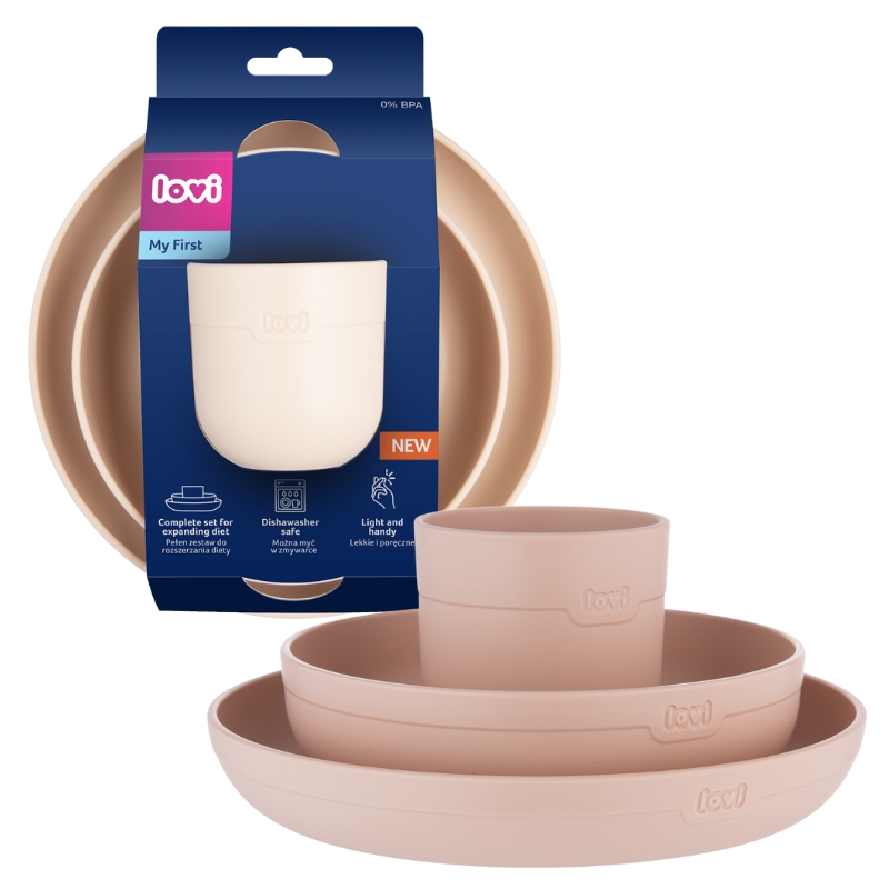 Перші самостійні прийоми їжі – це велика подія – повна цікавості, нових смаків і... іноді невеликого безладдя. Набір посуду LOVI створений для того, щоб підтримувати малюка в цій кулінарній подорожі. Ви знайдете в ньому все, що потрібно для хорошого старту: миску, тарілочку та відкриту чашку, які допомагають дитині розвивати навички самостійного харчування. Їх легка форма та зручні форми роблять їх простими для утримання в маленьких ручках – без стресу і з усмішкою.