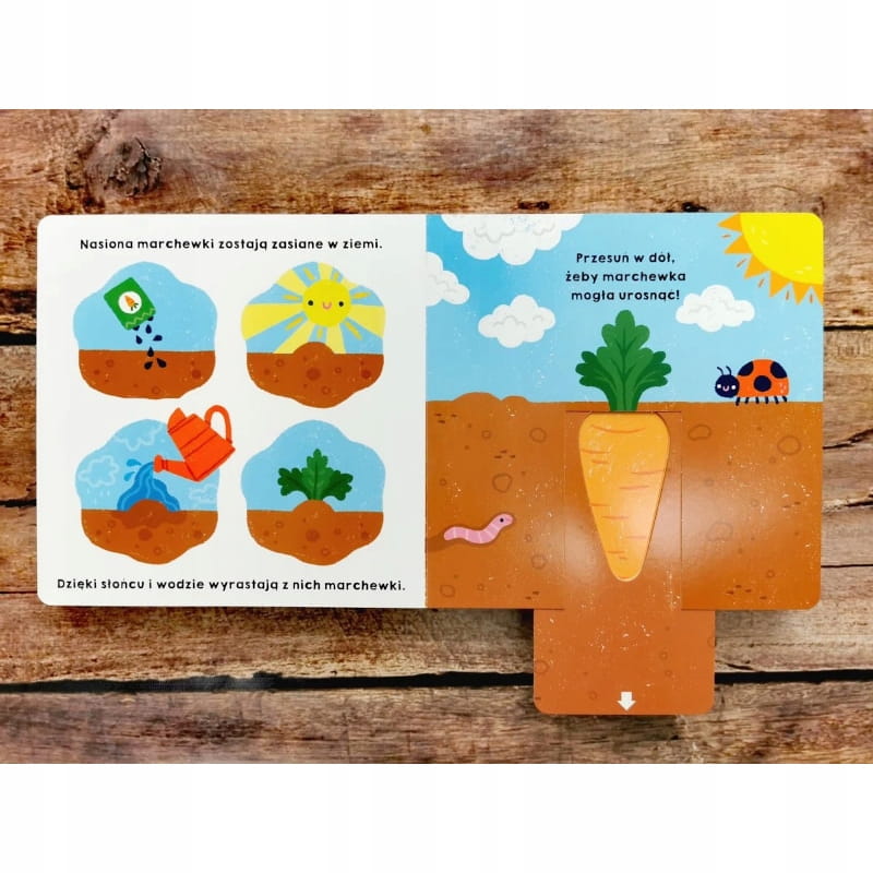 Картонна книжечка Подивися як я розвиваюся! показує маленькому читачеві, як ростуть рослинки і тварини. Завдяки рухомим елементам ми дізнаємося про цикл життя жабки, можемо спостерігати, як із ікри розвивається пуголовок, а потім молода жабка.