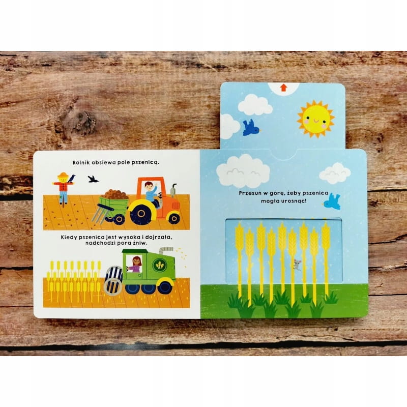 Дізнаємося також, як кажуть на малу вівцю, свинку, корову чи курку. Малюк може побачити, як садять моркву, а потім спостерігати, як вона росте. Він також дізнається, з якого квітки виростає фрукт, а також побачить, як фермер сіє зерна, з яких виростає пшениця.