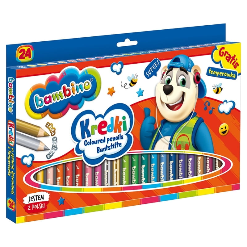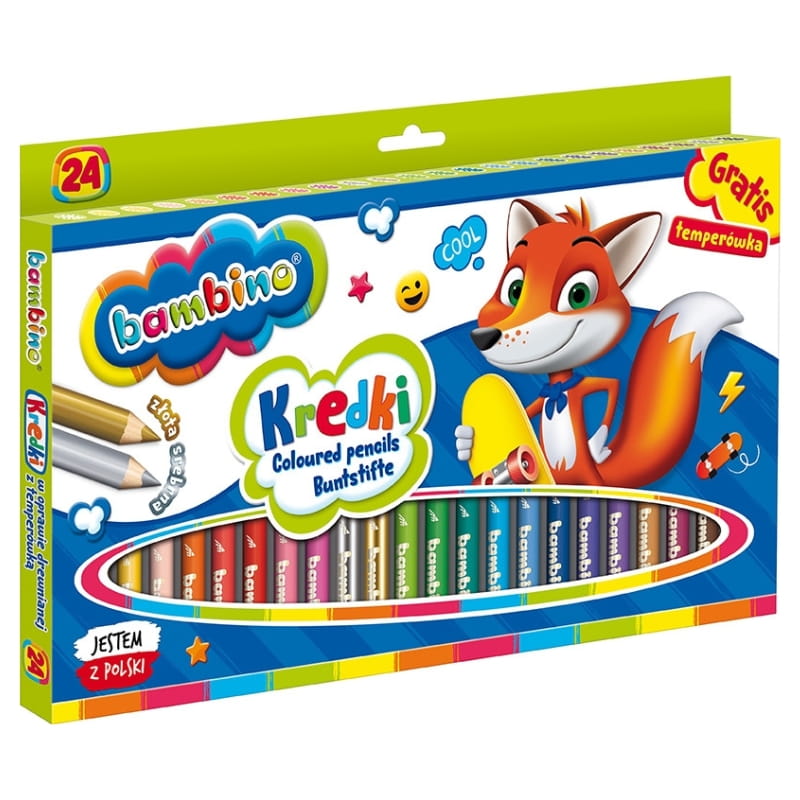 Коли дитина бере в руки свої перші олівці Бамбіно в дерев'яній обгортці, розпочинається історія, сповнена кольорів та емоцій. Кожен з двадцяти чотирьох насичених відтінків є не лише інструментом для малювання, а й імпульсом для вираження думок та мрій. Олівці виготовлені з природної каолінової глини, що робить малювання ними м'яким і приємним, а кольори – глибокими та яскравими.