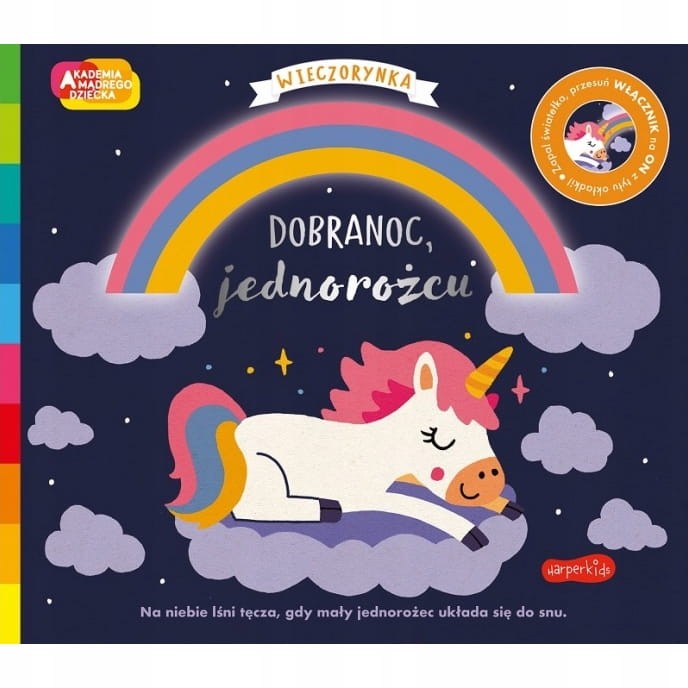 "На добраніч, єдинорогу" з серії "Академія Розумного Дитяти" - це мила книжечка на добраніч, яка запрошує дітей у магічний світ снів у супроводі чарівного єдинорога. Ця зворушлива історія про маленького єдинорога, який не може заснути, бо загубив свою улюблену іграшку. Вечірка є ідеальним супутником на добраніч, який допомагає дітям розслабитися і заснути спокійно.