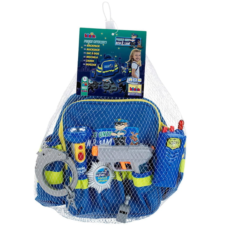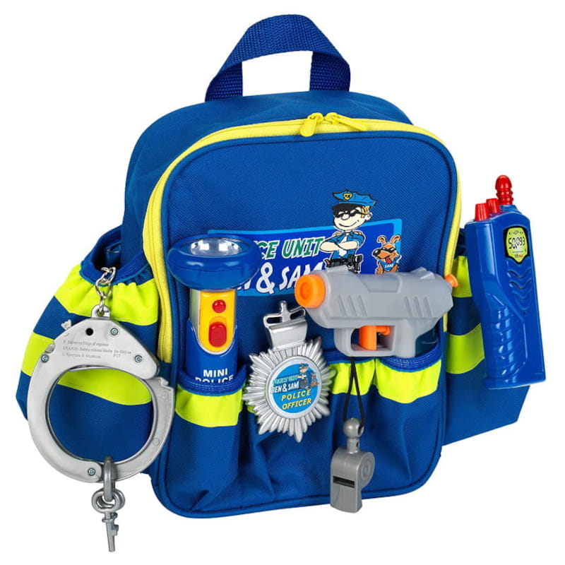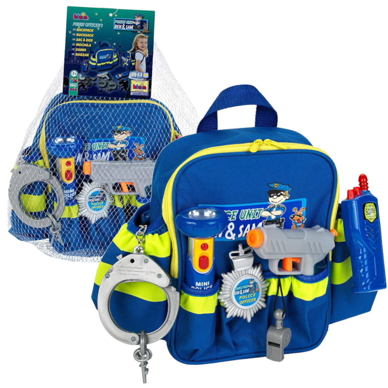 Гра в поліцію може бути чудовою пригодою. Завдяки комплекту від Klein діти можуть віддатися захоплюючій грі в ролі. Неймовірна, синя поліційна сумка Ben & Sam містить основне обладнання кожного правоохоронця. Сумка з відблискувальними смужками, ліхтариком, рацією, свистком, поліційною значкою та водяним пістолетом. Має безліч кишеньок для аксесуарів, основне відділення зміцнене пінистим наповнювачем. Сумка має ручку для перенесення та регульовані лямки.