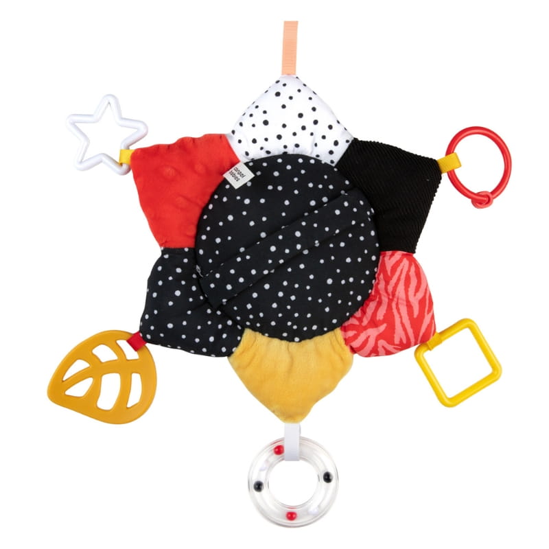 Різноманітні матеріали забезпечують багатий тактильний досвід, а практичний пластиковий гачок дозволяє повісити іграшку майже скрізь – біля ліжечка, візка, автокрісла чи переноски. Це чудовий супутник для домашніх ігор, прогулянок та кожної спільної подорожі.