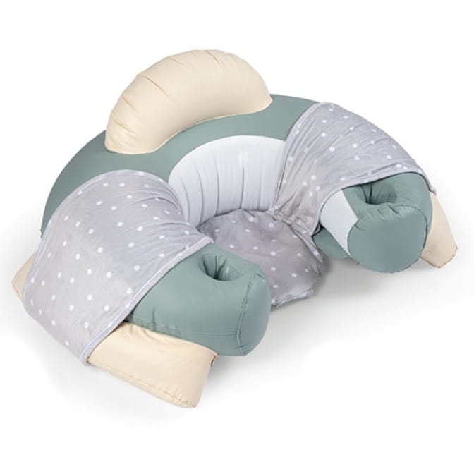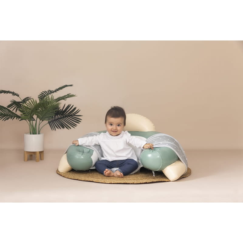 Сидіння надувне, має підголівник та підлокітники з тканинною оболонкою. Має ергономічну форму, завдяки чому ідеальне для навчання самостійного сидіння, а також сприяє розвитку правильної постави у малюків.