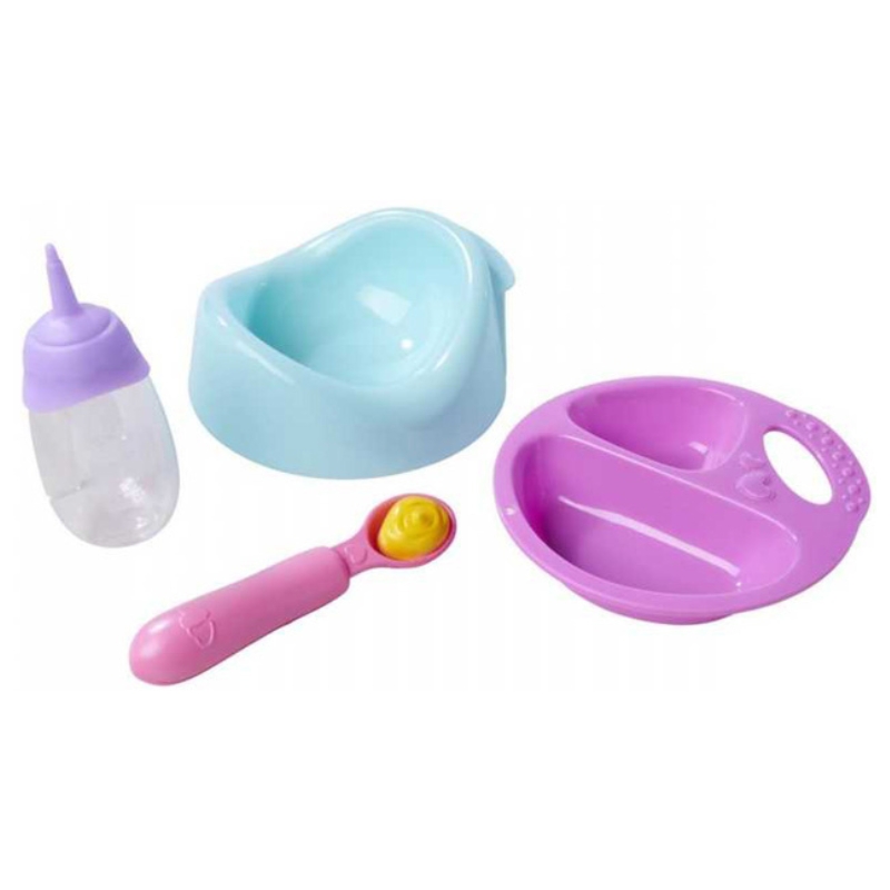 У наборі є магічна ложечка з функцією звуків, яка видає реалістичні звуки годування, коли ти підносиш її до уст малюка. Завдяки цьому гра стає ще більш захоплюючою та справжньою. Дитина може нагодувати свою лялю, напоїти її з пляшки, а потім посадити на горщик – точно так, як під час щоденного догляду за немовлям.