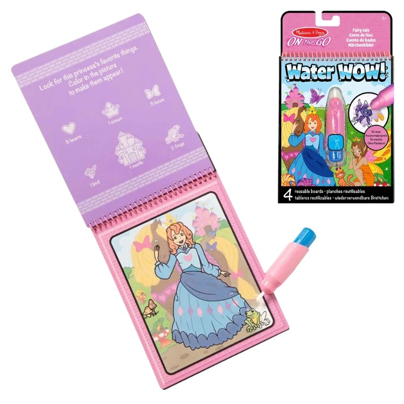 Перенесіть себе в магічну країну принцес і казкових історій з водною розмальовкою Мелісса та Даг Water Wow! Казки. Досить заповнити доданий водяний маркер звичайною водою, щоб чорно-білі ілюстрації перетворилися на кольорові малюнки, повні деталей із казкових оповідань.