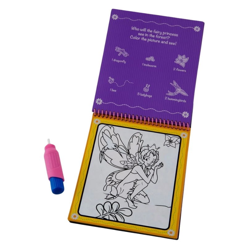Товстий водяний маркер розроблений з урахуванням маленьких рук, а практичне відділення в обкладинці дозволяє зручно зберігати його будь-де. Завдяки спіральному закріпленню книжка є зручною та легкою у використанні - ідеально підходить для гри вдома та в подорожі.
