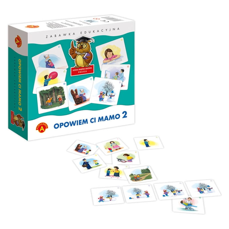„Розповім Тобі Мама 2” з серії Олександр Сова Мудра Голова – це ще одна частина унікальної гри, яка здобула визнання як у дітей, так і у їхніх опікунів. Незалежно від того, чи знаєте ви першу частину, чи тільки починаєте пригоду з цією серією, цей набір вразить свіжістю та оригінальністю ілюстрацій, що пробуджують уяву та заохочують до створення нових оповідань.