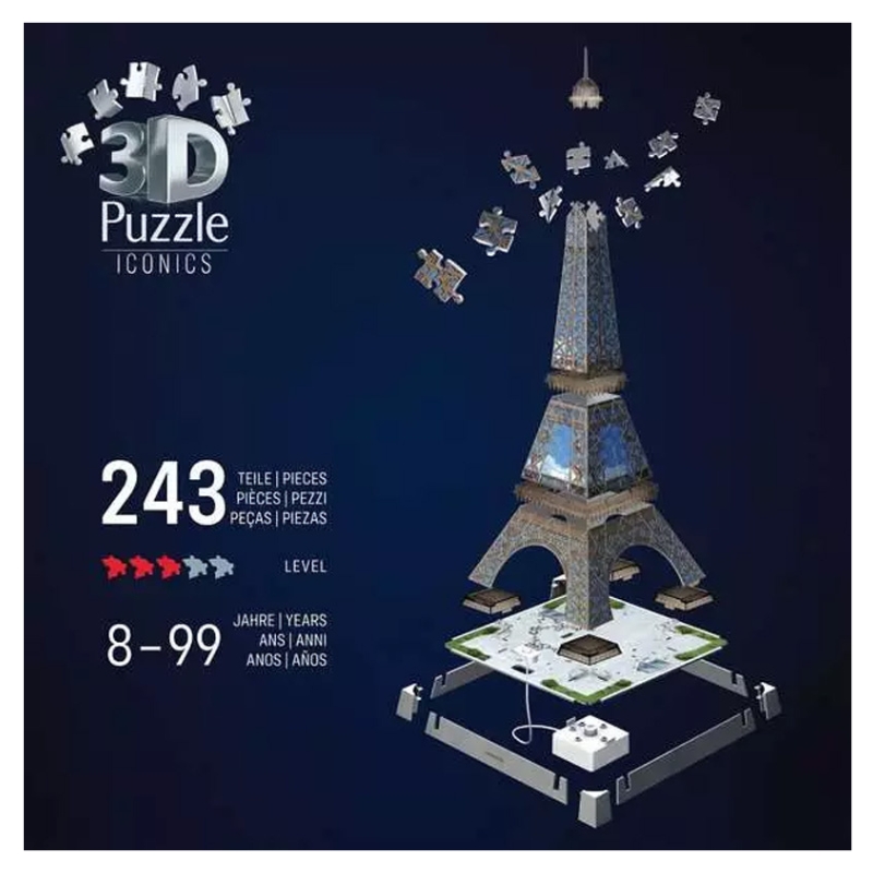 Найпрекрасніше в пазлах 3D – це те, що фінальний ефект справді захоплює. Модель має чудово збережені пропорції та продумані деталі, натхнені справжньою будівлею – Ейфелева вежа. Це більше, ніж головоломка – це легкий, але водночас міцний декоративний елемент, який чудово доповнить будь-який інтер'єр.