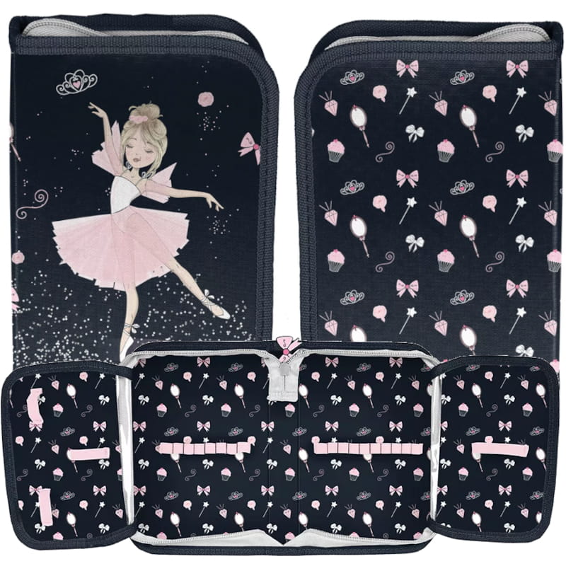 Пенал виготовлений у приємній для ока кольоровій гамі та показує графіку з мотивом балерини.