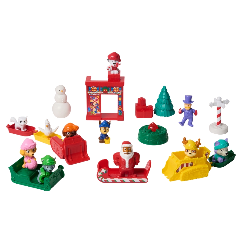 Кожне з 24 віконечок приховує інший сюрприз – від фігурок героїв таких як Чейз, Скай, Маршал, Зума, Рабл, Еверест чи Рокі, до додаткових елементів, що створюють повне життя, зимове містечко.