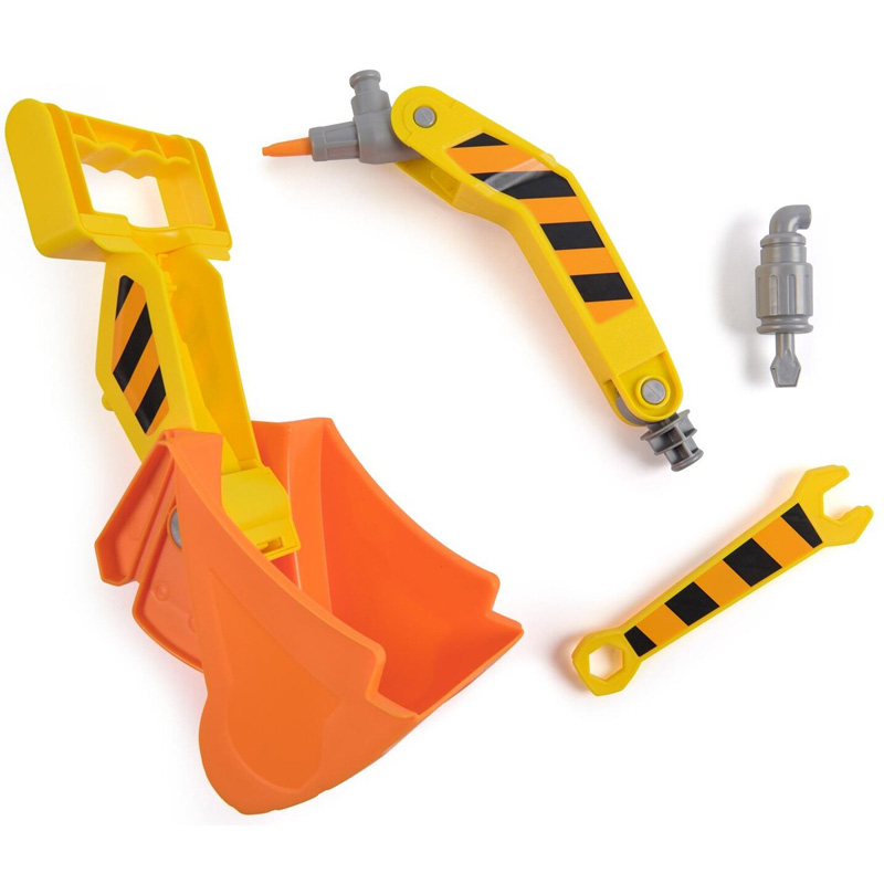 Завдяки ним діти можуть розбирати та відновлювати транспортний засіб, копати в піску чи ремонтувати елементи конструкції. Передній ковш перетворюється на інструмент для копання або зварювальний пальник, вихлопна труба стає викруткою, а бічна панель приховує ключ – все для того, щоб гра була інтерактивною та сповненою відкриттів.