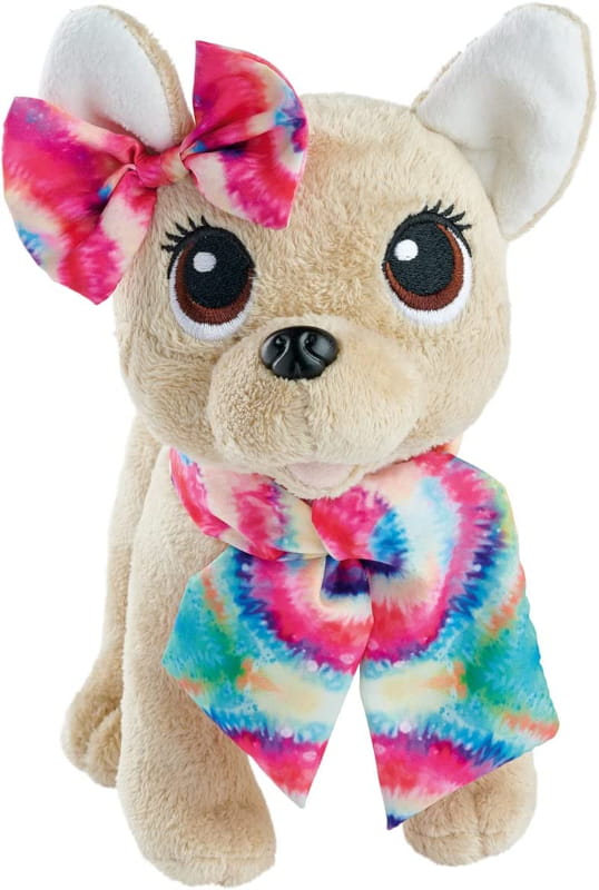 Чіхуахуа має яскраве, бежеве забарвлення та кольоровий хустинку і бант біля вушка. Він виготовлений з м’якого і приємного на дотик матеріалу. Його розмір дозволяє зручно носити його в торбинці.