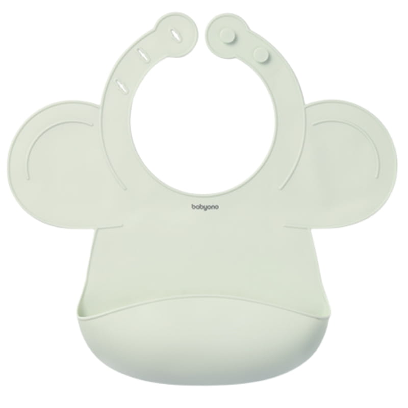 Страви з малюком можуть бути сповнені усмішок, якщо лише у вас є відповідна підтримка. Силіконовий слюнявчик Babyono з регулюванням, в красивому відтінку м'ятного, це справжній союзник батьків та малих гурманів.