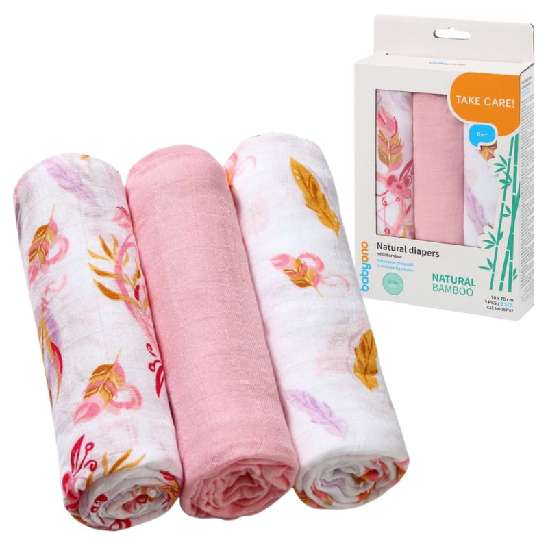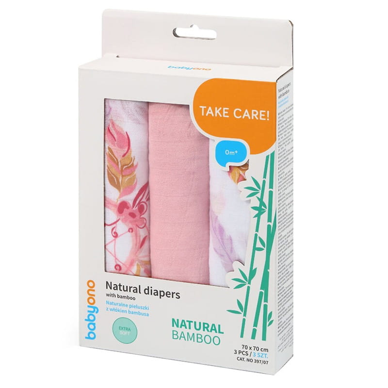 Babyono Naturalne Pieluszki Z Włókien Bambusa Różowe 3 Szt. 3-Pak