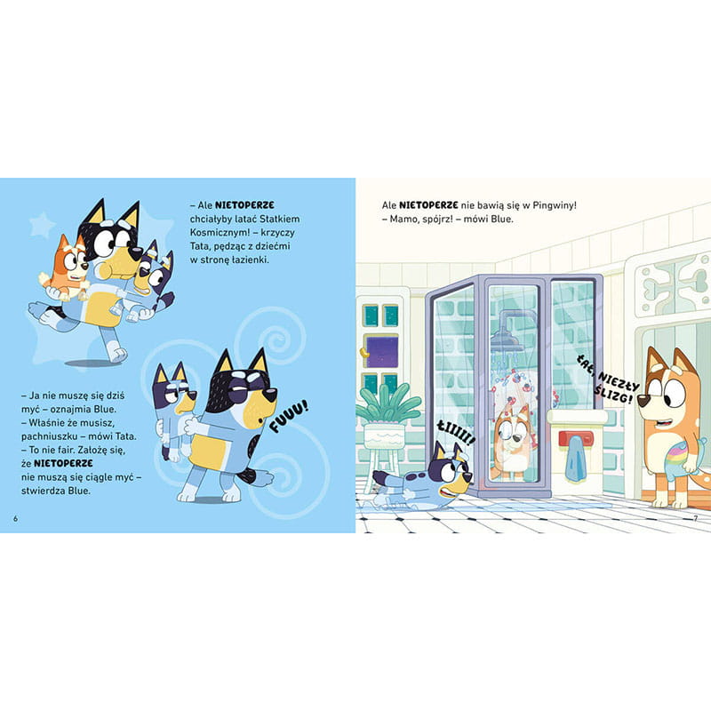 Ta pełna radości i cennych przesłań książeczka to doskonały wybór dla najmłodszych miłośników Bluey, którzy uwielbiają odkrywać nowe historie i dowiadywać się czegoś o codziennych wartościach w towarzystwie ulubionych postaci. Opowieść została zainspirowana jednym z najpopularniejszych odcinków serialu i znakomicie oddaje jego ciepło oraz charakterystyczny humor. Żywe ilustracje przeniesione prosto z ekranu ożywiają świat australijskiej rodziny piesków, której przygody podbiły serca dzieci na całym świecie.