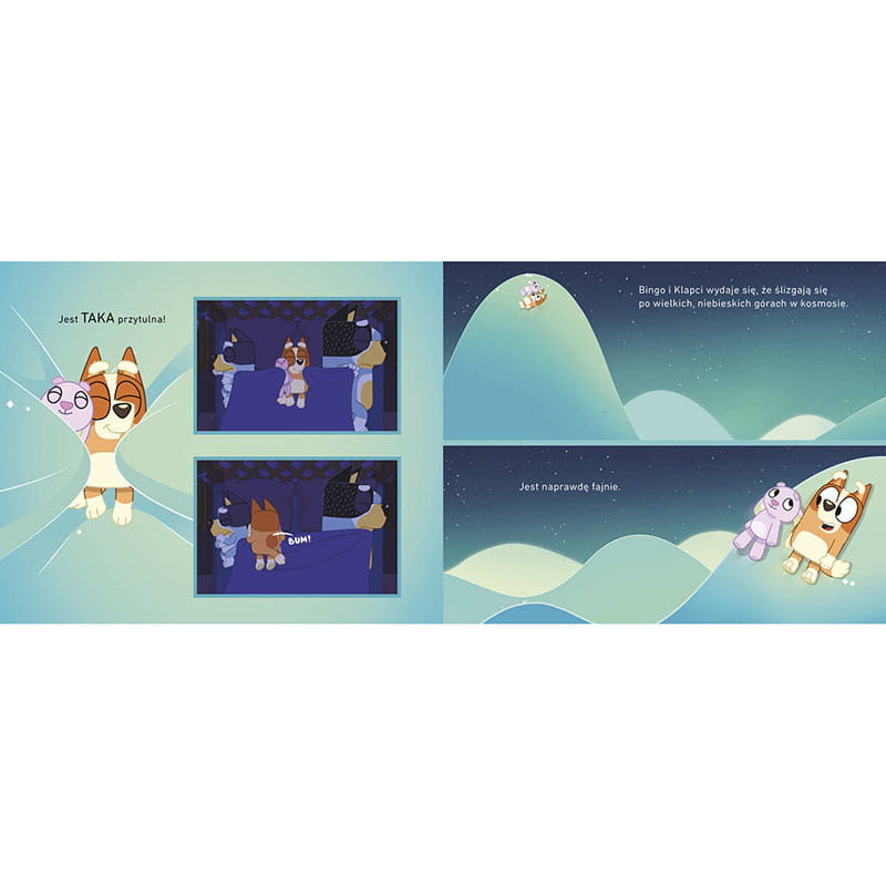 "Bluey. Spanko" to ciepła i pełna humoru historia, która przypomina, że moment zasypiania może być równie magiczny jak przygody dnia. Każda strona tej książeczki, napisanej przez Joe Brumma, emanuje wyjątkowym urokiem – prosty, przyjazny tekst w połączeniu z ilustracjami inspirowanymi animacją wciąga zarówno dzieci, jak i dorosłych. Wieczorne dialogi i sytuacje opisane w książce oddają urok codziennych rytuałów każdej rodziny, przypominając o pięknie wspólnego czasu.