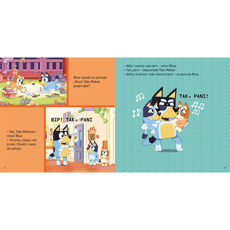 Dla wszystkich wielbicieli przygód Bluey nadchodzi kolejna dawka zabawy w serii Moja czytanka! W książeczce Bluey. Tato-robot, sprytne siostry Bluey i Bingo wpadają na pomysł, by ich tata został… robotem do sprzątania! Na początku Tato-robot doskonale spełnia swoją rolę, dbając o każdy zakamarek, ale wkrótce zaczynają pojawiać się drobne „usterki”. Niezawodna maszyna nieoczekiwanie wymaga naprawy, co daje dziewczynkom do myślenia, jak zaradzić tej sytuacji.