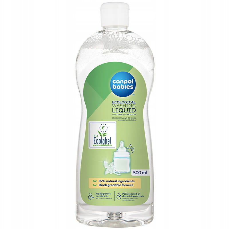 Рідина для миття бутилок і сосок Canpol babies була створена з думкою про дітей - їхнє здоров'я та безпеку. Рідина є гіпоалергенною, безбарвною і містить натуральні складники. Досить невеликої кількості, щоб ефективно очистити залишки їжі з бутилок і інших аксесуарів для годування.