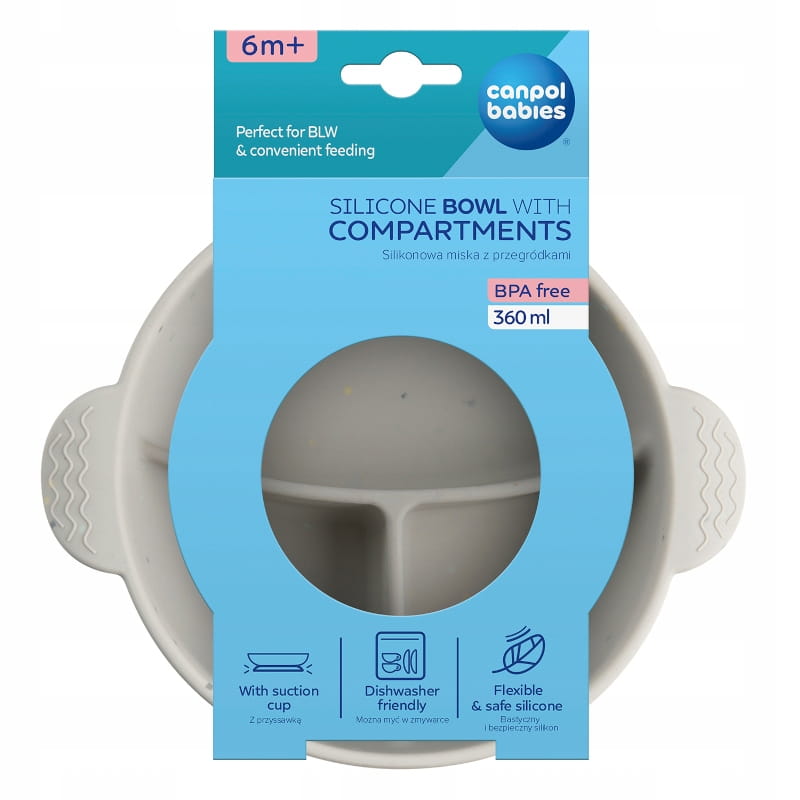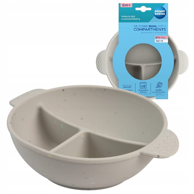 Відкрийте світ смаків разом з малюком завдяки силіконовому миску від Canpol Babies з відділеннями та присоскою – ідеальному супутнику на початку кулінарної подорожі та під час практики методу BLW (Дитина Любить Вибір).