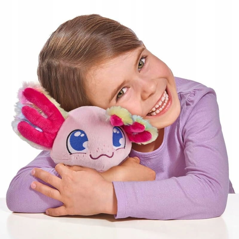 Аксолотль має рожеве хутро, райдужні зябра і виготовлений з м'якого матеріалу.