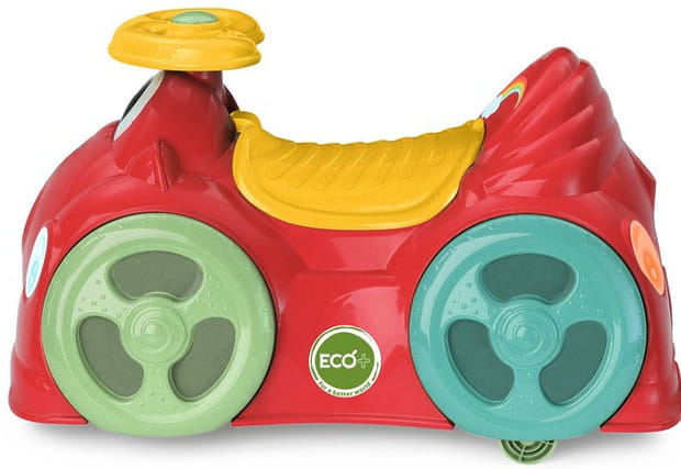 Їздик має обертові колеса, завдяки яким дитина може вільно рухатися. У сидінні їздила захований сховок, який можна використовувати для перевезення улюблених іграшок та скарбів.
