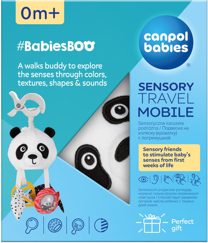 Набір має прорізувач, шурхотливі елементи та брязкальце. Додатковою атракцією є дзеркальце - кожна дитина любить дивитися у дзеркало і спостерігати за світом. Каравелла стане чудовим супутником під час прогулянок і подорожей, завдяки зручному кронштейну, який дозволить закріпити її на кріслі, візку, ліжечку, а також як додатковий елемент для сенсорної матки Canpol.