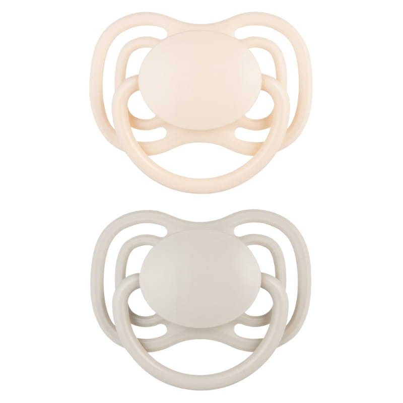 Smoczek został wyposażony w specjalnie zaprojektowaną tarczkę, która zapewnia maksymalny przepływ powietrza, chroniąc delikatną skórę dziecka przed podrażnieniami i minimalizując ryzyko odciskania.