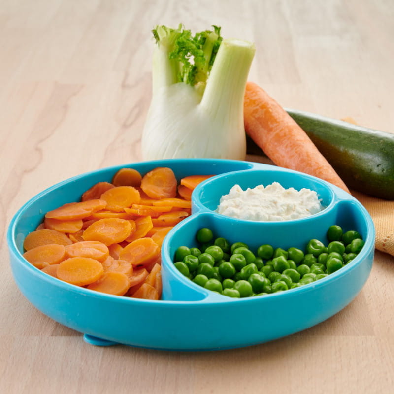 Дно тарілки у формі присоски запобігає перекиданню або виливанню її вмісту. Завдяки 3 окремим відділенням їжа не змішується між собою, а їх різноманітний розмір дозволяє збалансувати дієту!