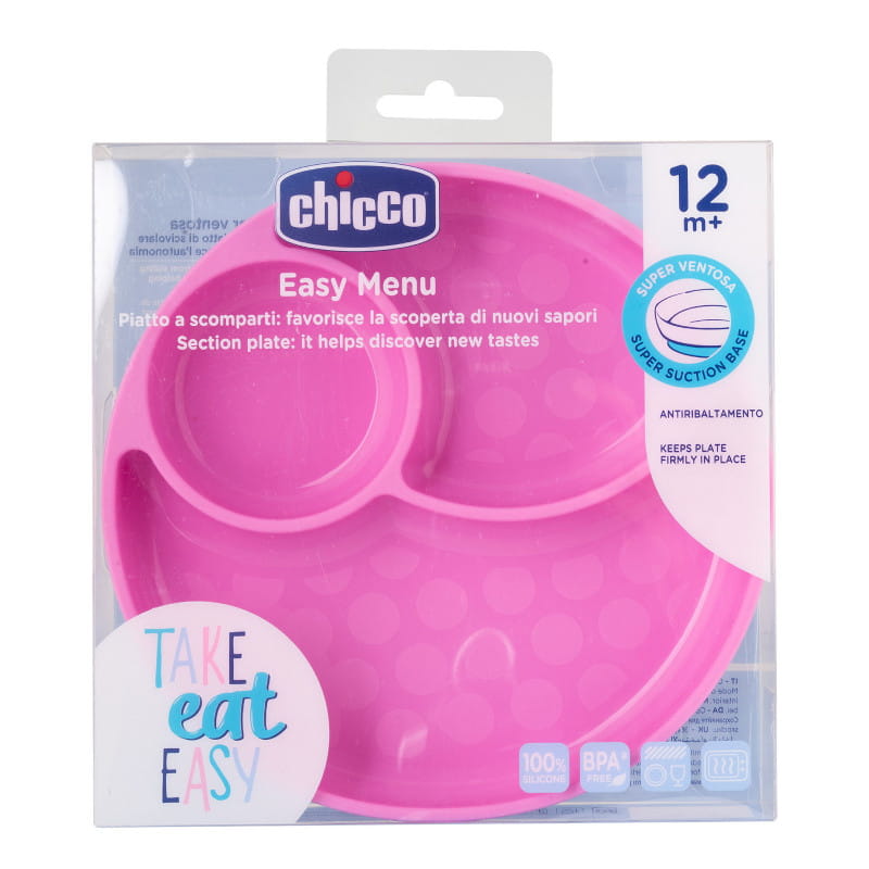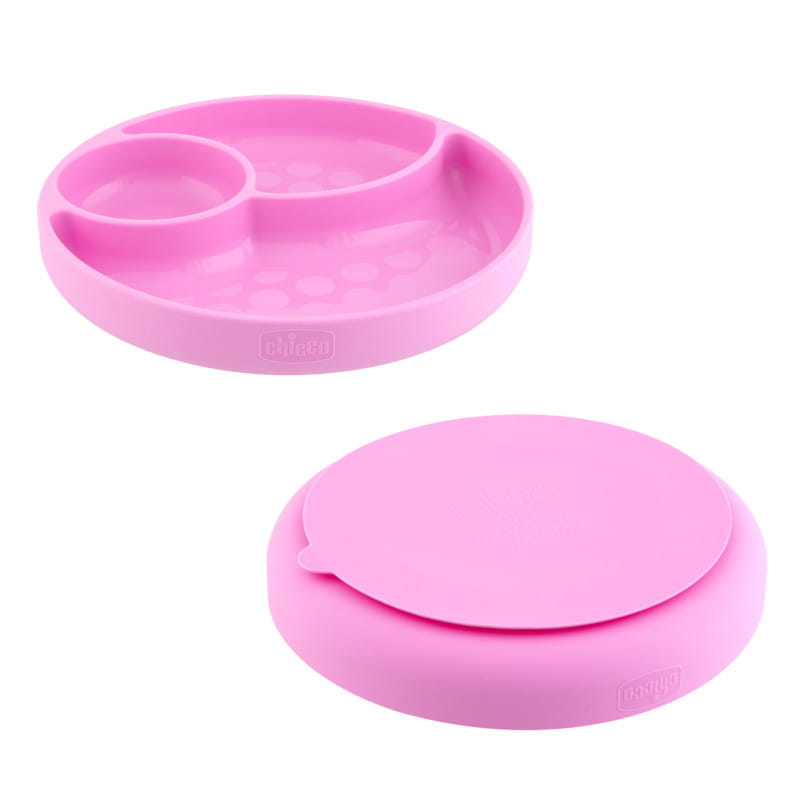 Chicco Трикомпонентна Силіконова Тарілка З Присоскою Рожева Take Eat Easy 12m+