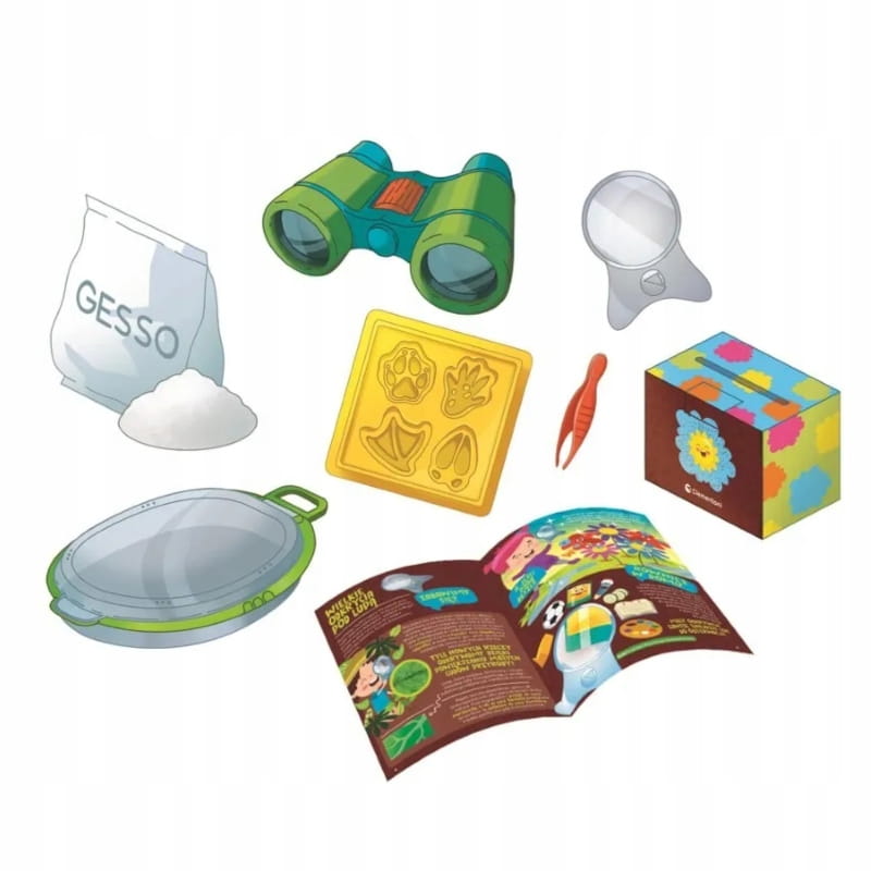 Додатково, у валізці знаходяться гіпсові форми, які дозволять відтворити сліди тварин - ідеально для маленьких детективів, які люблять відстежувати сліди тварин. Комплект доповнений картами, що містять безліч інформації про природу, що дозволить дітям розширити свої знання під час гри на свіжому повітрі.