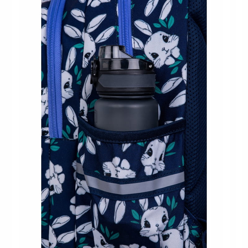 По боках рюкзака є дві кишені для пляшки та інших шкільних аксесуарів. Рюкзак виготовлений у сучасній стилістиці з мотивом милих кроликів, що безсумнівно додасть стилю та оригінальності.