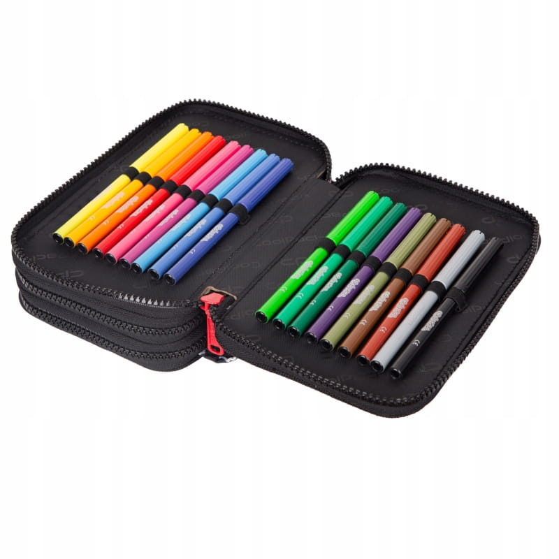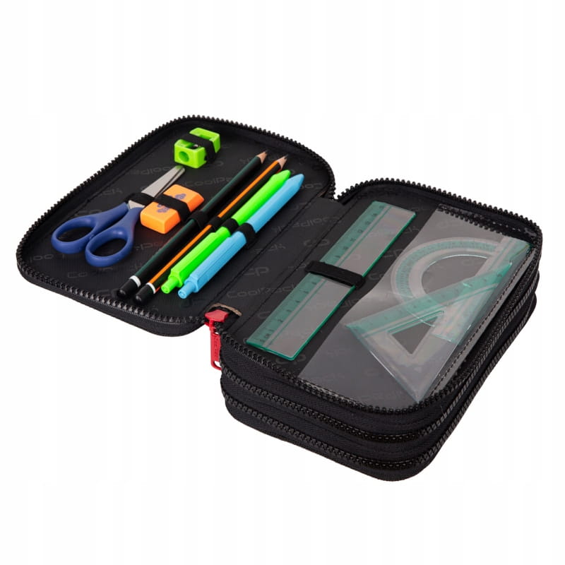 Пенал є трьохкомпонентним і має повне обладнання, необхідне в кожній шкільній ситуації - від олівців до ножиць.