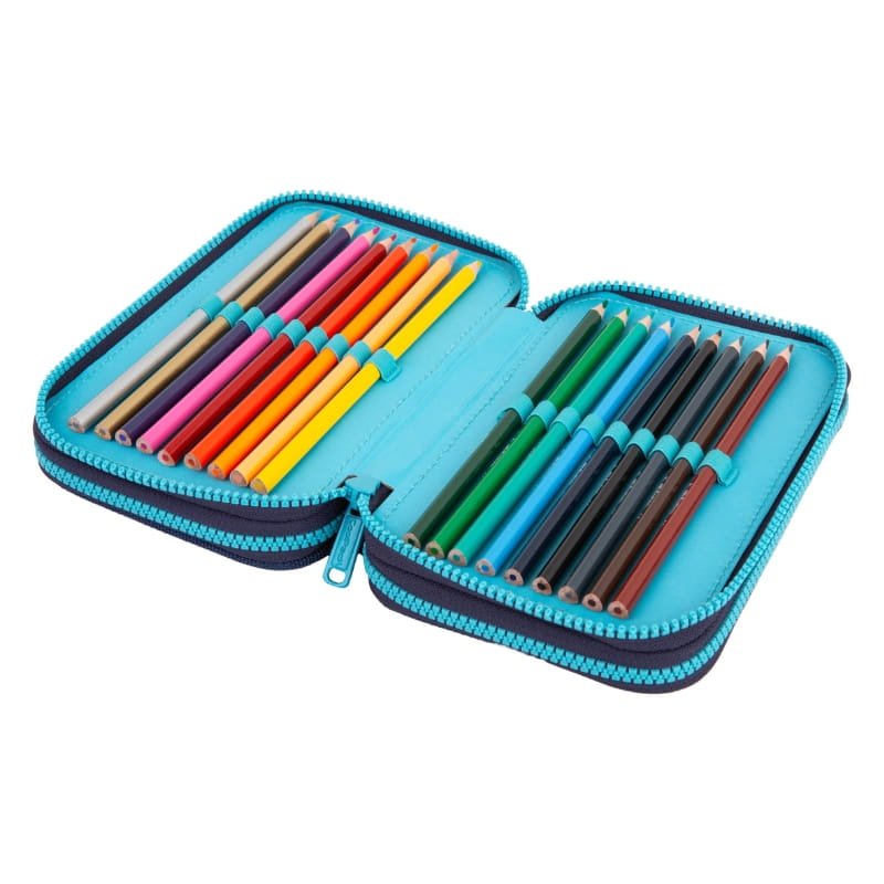 Każda przegródka piórnika zamykana jest na solidny zamek. Boki piórnika są twarde, dzięki czemu jest długotrwały, a jego zawartość jest bezpieczna.