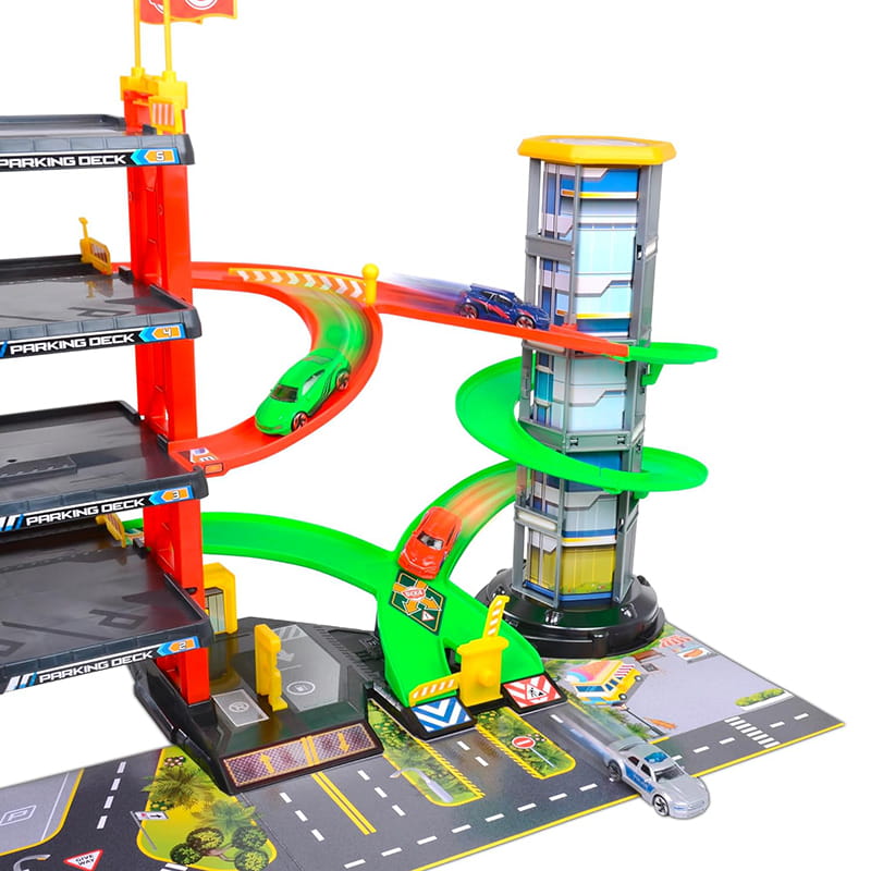П'ять рівнів з парковими місцями, рампами та гоночною трасою — це гарантія емоцій на кожному кроці. Ваша дитина зможе відчути захоплюючу їзду та точні маневри, розвиваючи свою уяву та навички.