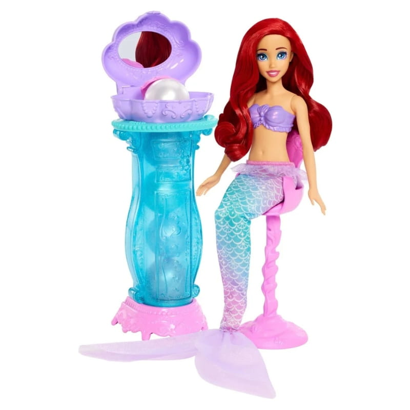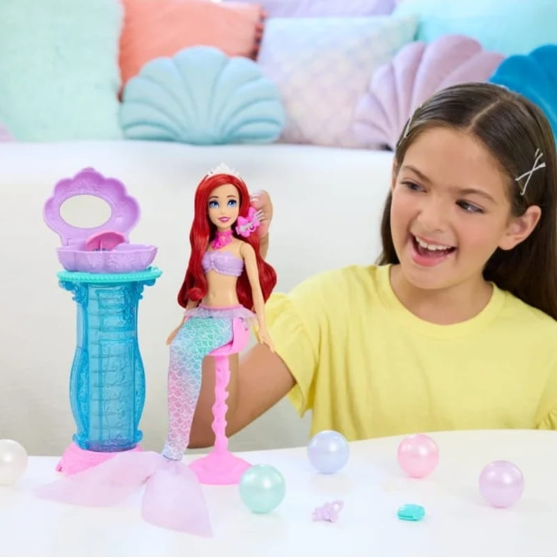 Wśród ukrytych skarbów znajdziesz tiarę, naszyjnik i kokardkę do włosów, które dodają Arielce królewskiego blasku i pozwalają na niezliczone metamorfozy. A gdy nadejdzie czas na kolejne przygody, "perełki" można ponownie napełnić i załadować do toaletki, by cieszyć się odkrywaniem skarbów na nowo!