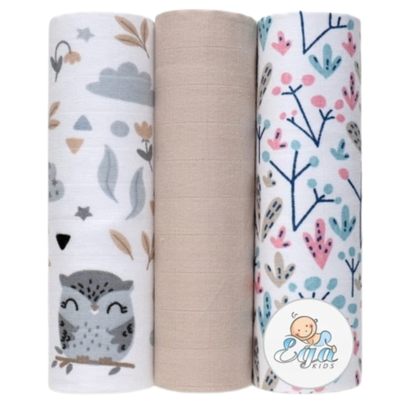Комплект з 3 муслінових пелюшок від польського бренду Ega Kids є необхідністю для будь-якого набору для новонароджених. Виготовлені з 100% натуральної бавовни, вони особливо м'які, дихаючі та безпечні навіть для найбільш чутливої шкіри дитини. Вони підійдуть з перших днів життя – як конверт, легкий плед, простирадло, підкладка для пеленання або захист від сонця.