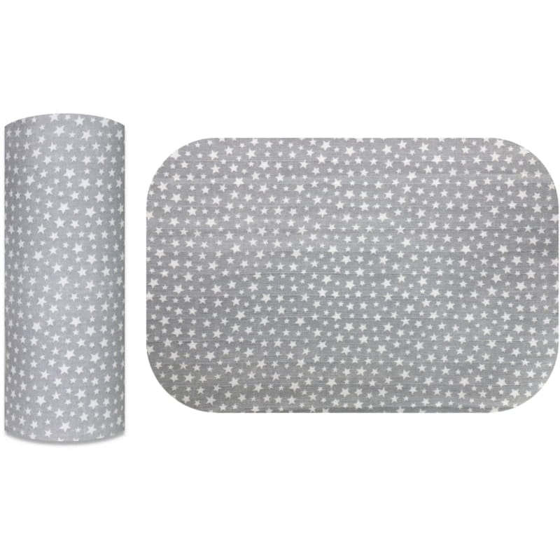 Набір містить 4 надруковані пелюшки в відтінках сірого з графікою. Дві з пелюшок мають принт з дрібними зірочками, одна в чорних та жовтих коронах, а одна в стилі бохо, що зображає лам і кактуси.