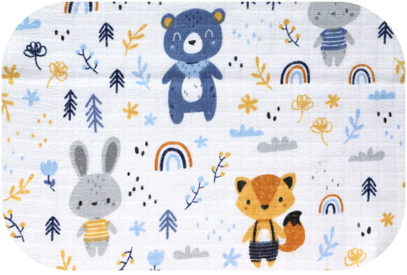 - 5 шт. бавовняних пелюшок: 3 шт. з малюнками, 2 шт. однотонні