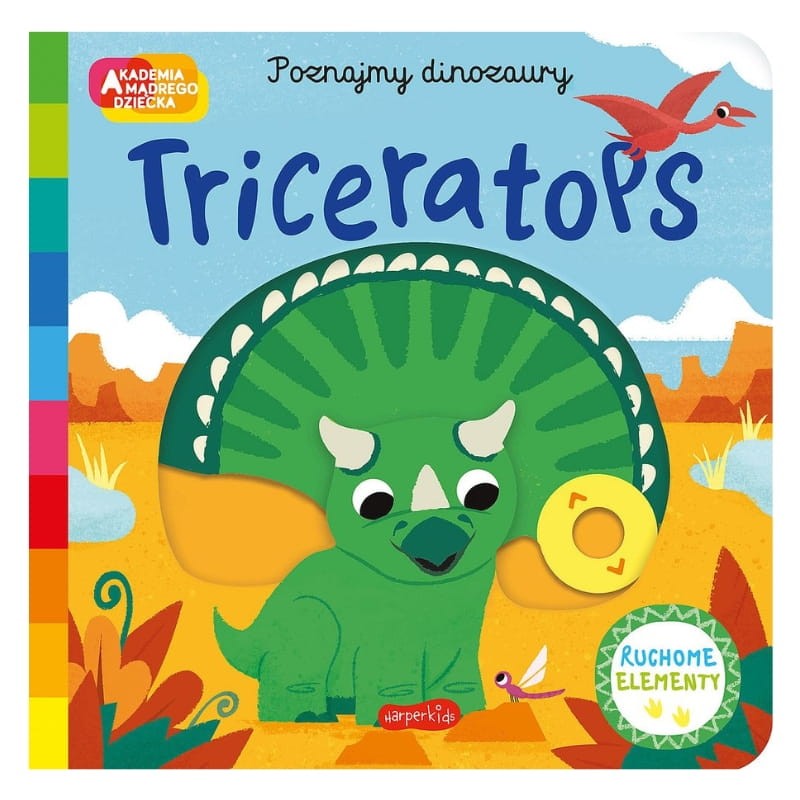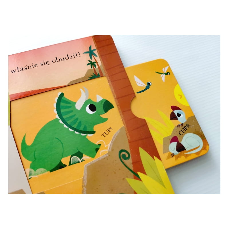 Ця унікальна книжечка представляє Трицератопса – миролюбного травоїдного з трьома характерними рогами, який більше захоплювався цікавістю світу, ніж викликав страх. Радісні оповіді, кольорові ілюстрації та рухомі елементи роблять вивчення палеонтології справжньою пригодою, повною сміху та дотикових відкриттів.