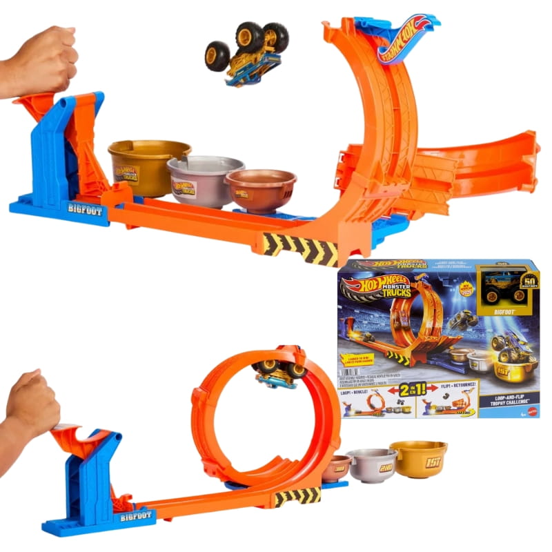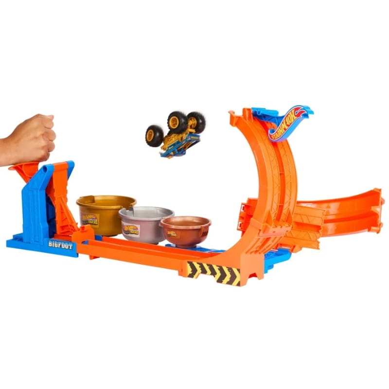 To wyjątkowe wydanie powstało z okazji 50. rocznicy kultowego Bigfoota, który teraz może ścigać się, wykonywać szalone akrobacje i zdobywać trofea. Dzięki dwóm trybom zabawy mali kierowcy mogą wystrzelić ciężarówkę przez spektakularną pętlę, a następnie wykonać kaskaderski skok do pojemnika-trofeum.