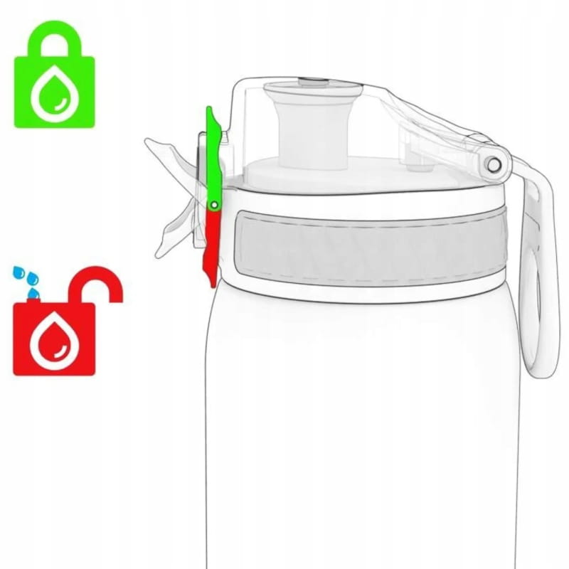 Бідон характеризується спеціальним, запатентованим механізмом, завдяки якому пиття буде герметично закритим. Після відстібання захисту достатньо перемістити кнопку вниз і натиснути її нижню частину, щоб відкрити кришку. Абсолютно нове, запатентоване замикання!