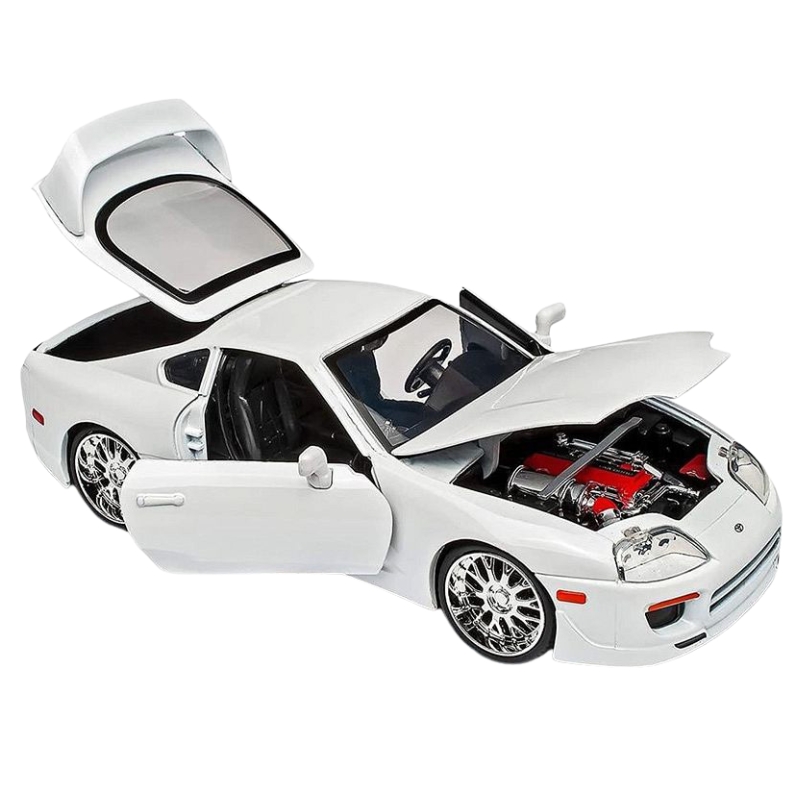 Виготовлена в масштабі 1:24, колекційна модель захоплює досконалістю кожної деталі. Блискучий кузов, кінематографічні акценти і відкриті двері, капот і багажник роблять Supra виглядає як мініатюра автомобіля Брайана О'Коннера. Це не тільки автомобіль – це символ сміливості, швидкості і свободи, який ти можеш мати під рукою.