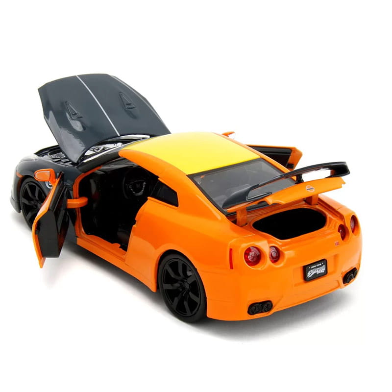 Sportowy model Nissana GT-R, wykonany z solidnego metalu, zachwyca precyzyjnym odwzorowaniem detali – od otwieranych drzwi, maski i bagażnika po dynamiczną sylwetkę, która przyciąga wzrok każdego fana motoryzacji i animacji.
