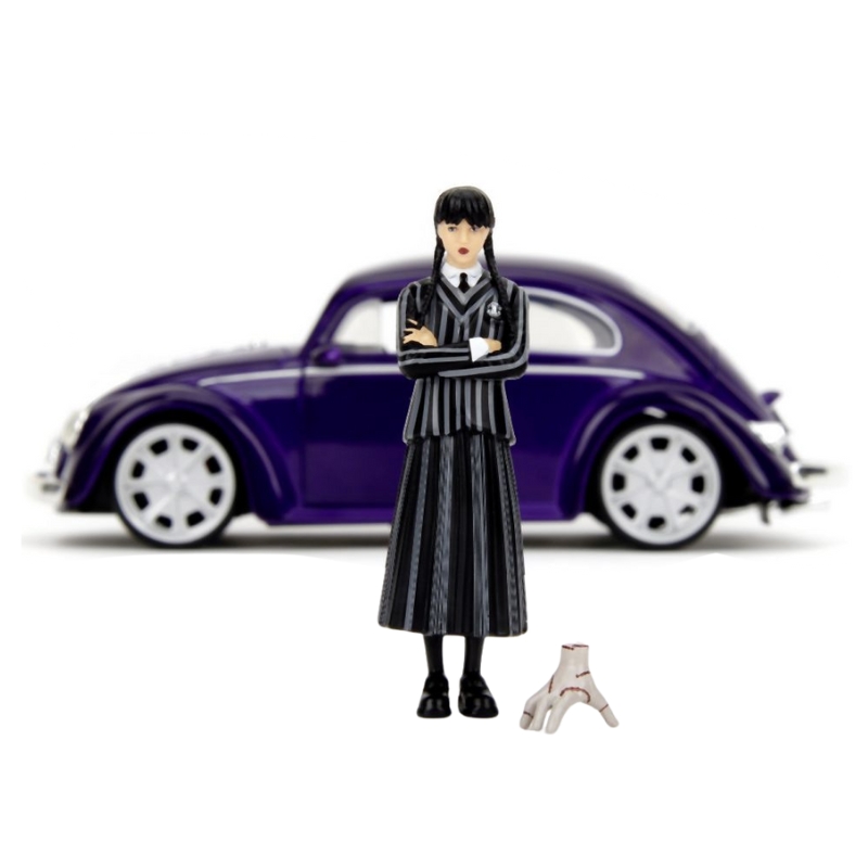 Увійдіть у темний і захоплюючий світ Wednesday Addams з цим культовим автомобілем! Ця детально відтворена модель Volkswagen Beetle масштабу 1:24 є обов’язковою пропозицією для фанатів серіалу Wednesday та колекціонерів моделей die-cast.