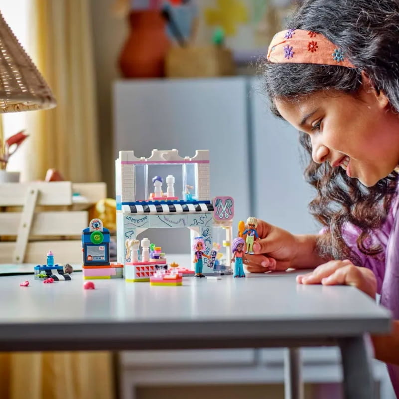 Zestaw LEGO® Friends Salon fryzjerski i sklep z ozdobami to prawdziwa skarbnica możliwości dla młodych stylistów i projektantów.