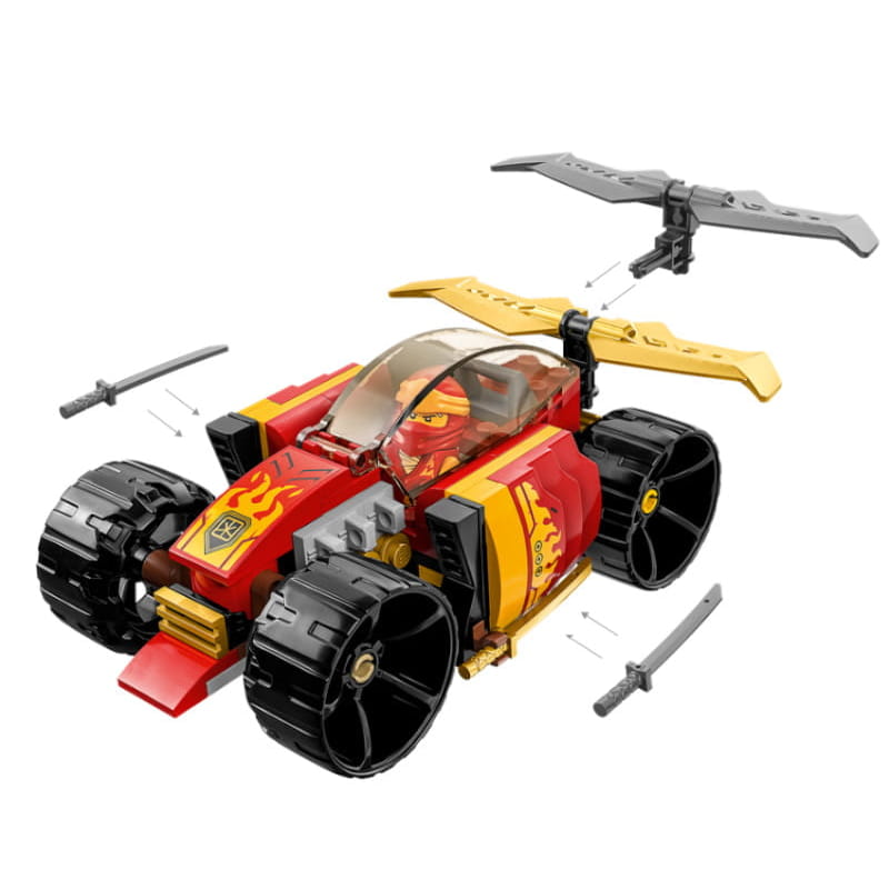 Гоночний автомобіль ніндзя Кая має відкриту кабіну та вражаючий золотий спойлер ззаду. Його можна перетворити з позашляховика на гоночний автомобіль, замінивши чотири колеса.