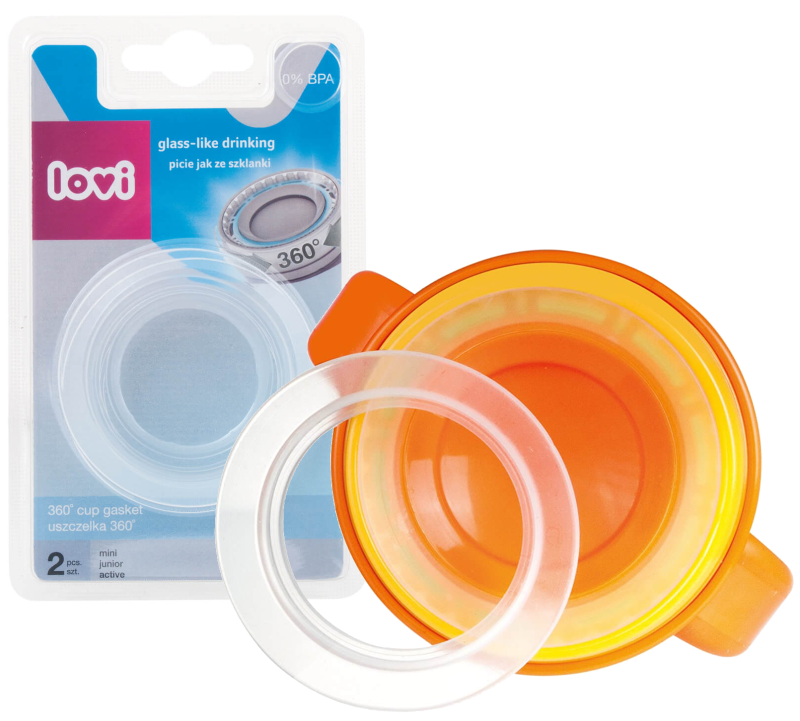 Ущільнювачі LOVI підходять для кубків 360°: mini та junior. Дозволяють пити як зі скла, але без проливання.