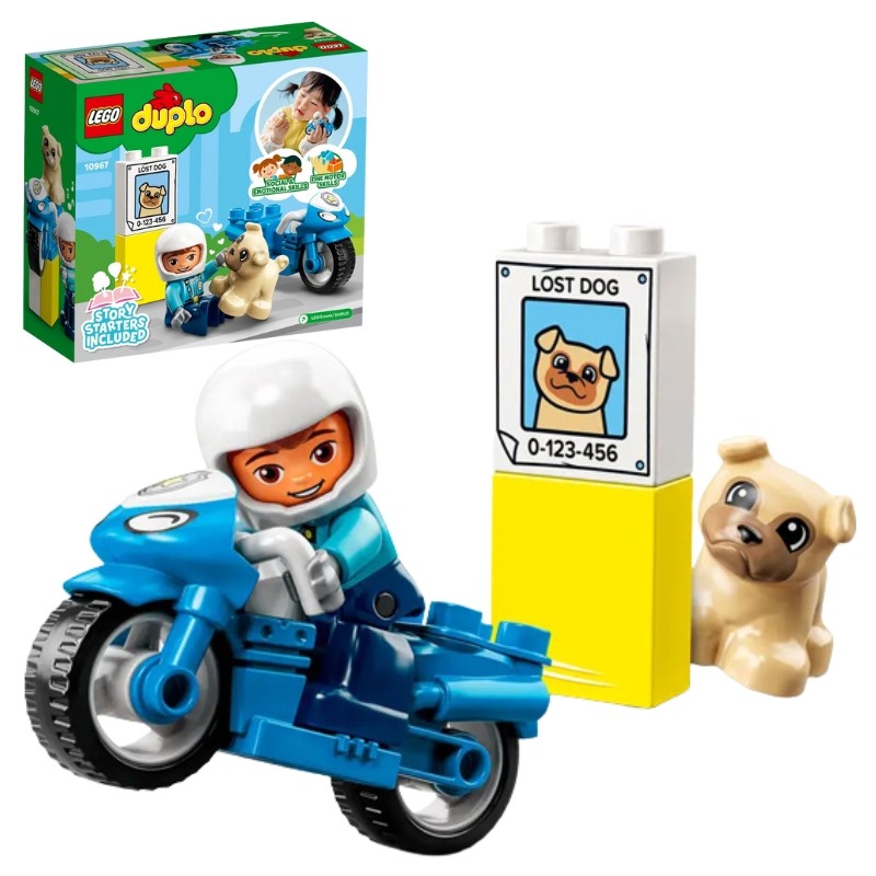 З допомогою плакату з оголошенням «Зник собака» малюки можуть розпочати емоційну пригоду, вчитися при цьому емпатії, дбаючи про тварин і логічного мислення. Кожен елемент набору має своє значення – від симпатичного поліцейського мотоцикла LEGO Duplo до милого песика, який чекає на повернення. Це історія, яку можна розповідати безкінечно, створюючи щоразу нові сценарії та повні емоцій пригоди.