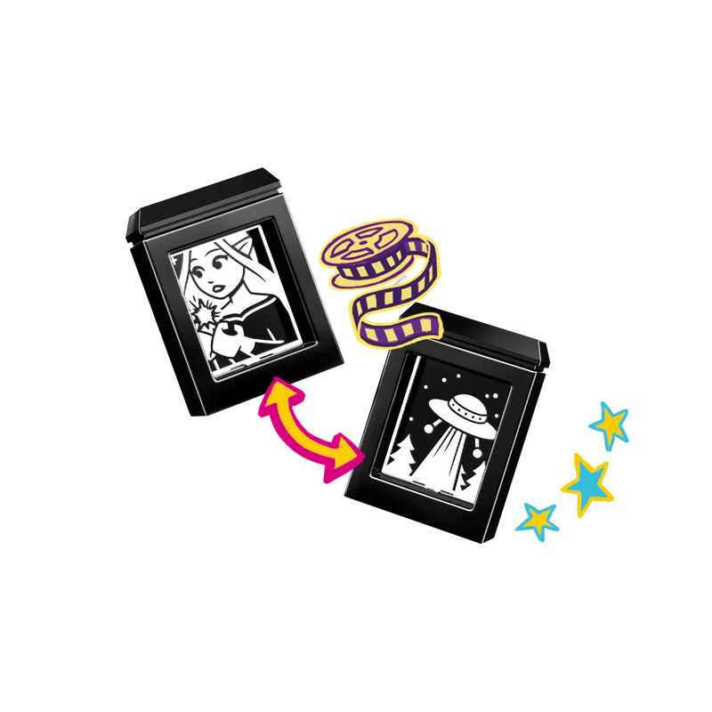Цей милий набір (154 елементи, від 6 років) дозволяє маленьким кіноманам скласти власний екран, вставити одну з двох «стрічок» у проектор і натиснути підсвічений блок, щоб зображення спалахнуло, як у справжньому кінотеатрі. Весь комплект вміщується на долоні, тому сеанс можна влаштувати як на столі, так і в будиночку для ляльок.